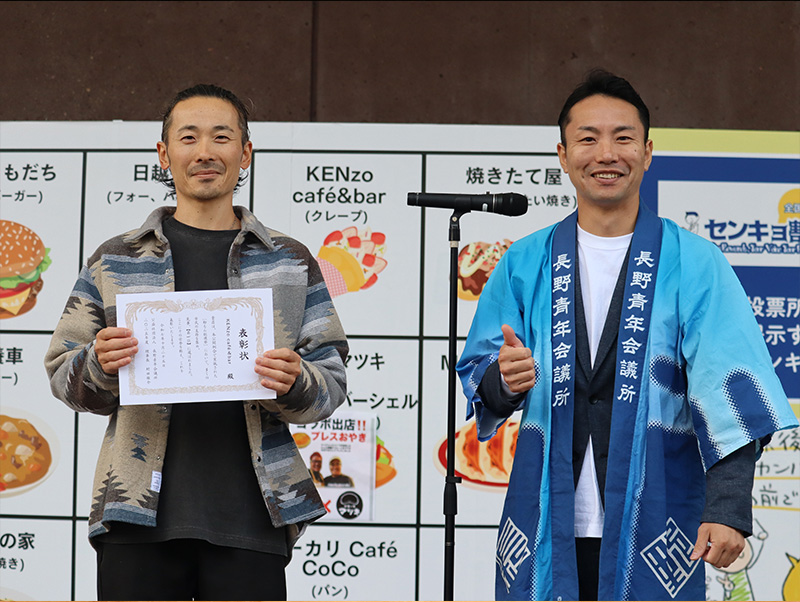 屋外では、気軽に参加できる企画として「粉もん総選挙」を実施しました。お好み焼き・おやき・たこ焼きなど長野市らしい“粉もの”が並び、来場者が“おいしい一票”を投じる形式で楽しみました。結果、長野市若里のKENzoさんのクレープが見事優勝を飾り、大きな盛り上がりを見せました。学生や若者にも人気が高く、会場には終始にぎわいが生まれました。また、政治や選挙にまつわるクイズを年代別に楽しめる「スタンプラリー」も実施しました。親子連れから若者まで幅広く参加があり、会場周辺を巡りながら問題に挑戦することで、自然と選挙への理解が深まる内容となりました。